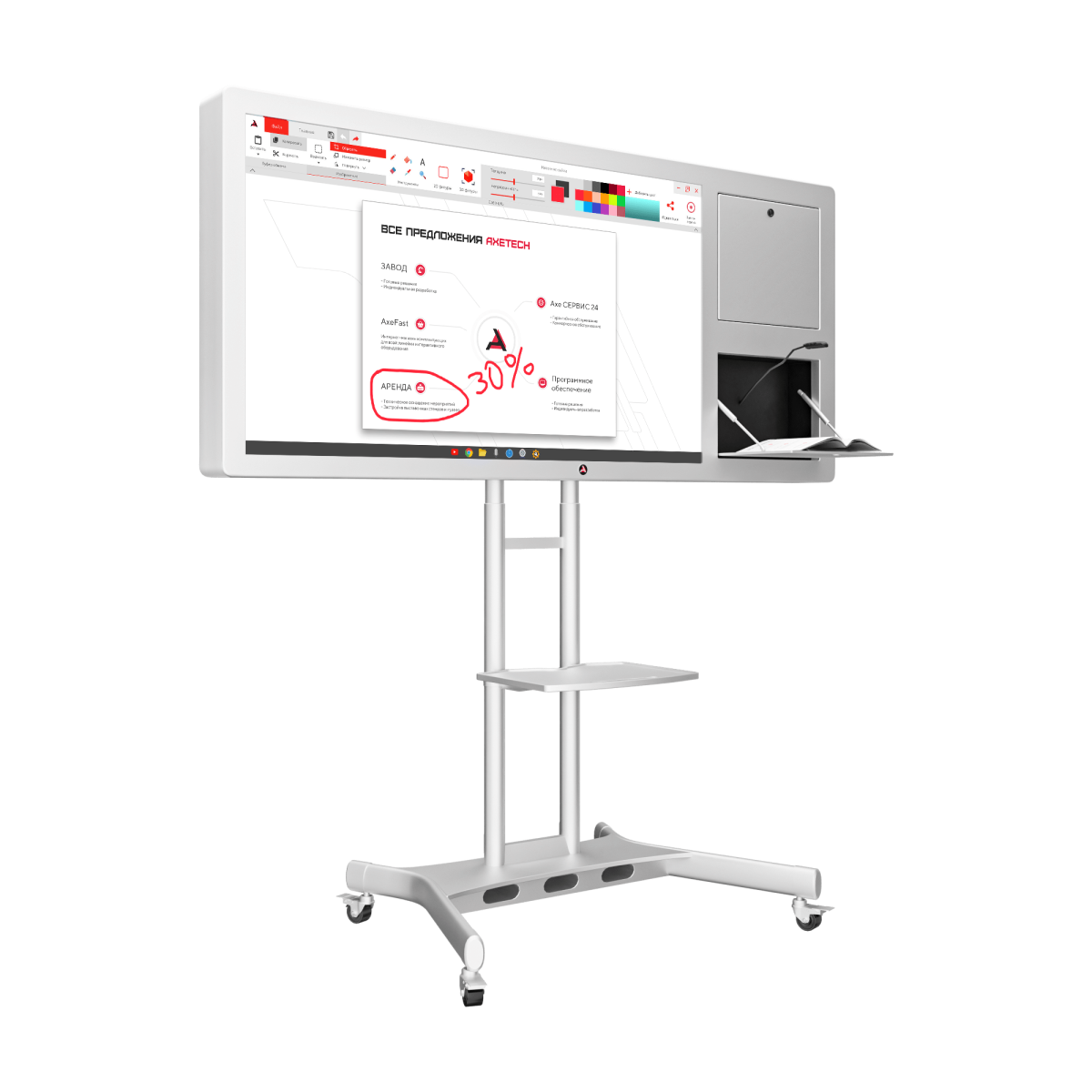 Horizon Scan - интерактивная панель, которая позволяет моментально отображать любые предметы или документы на большом экране, с помощью встроенной документ-камеры. Это идеальное решение для таких образовательных учреждений, как: университеты, школы, колледжи. Помимо этого, данная модель предоставляет возможность демонстрировать презентации и видеоматериалы, отправлять необходимые файлы с дисплея на электронную почту и в социальные сети, вносить правки в документах на интерактивной панеле, а также выводить необходимые материалы на печать.