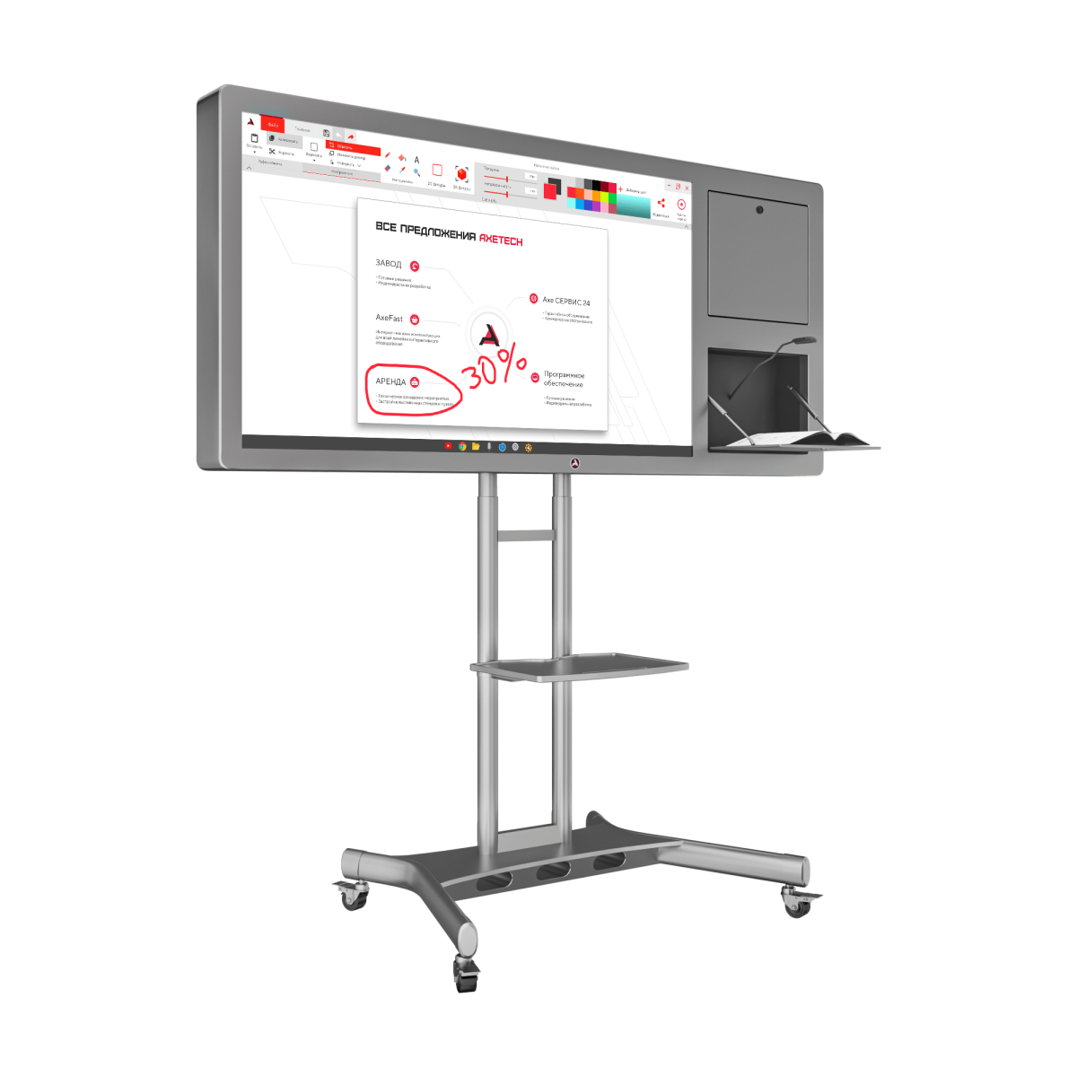 Horizon Scan - интерактивная панель, которая позволяет моментально отображать любые предметы или документы на большом экране, с помощью встроенной документ-камеры. Это идеальное решение для таких образовательных учреждений, как: университеты, школы, колледжи. Помимо этого, данная модель предоставляет возможность демонстрировать презентации и видеоматериалы, отправлять необходимые файлы с дисплея на электронную почту и в социальные сети, вносить правки в документах на интерактивной панеле, а также выводить необходимые материалы на печать.