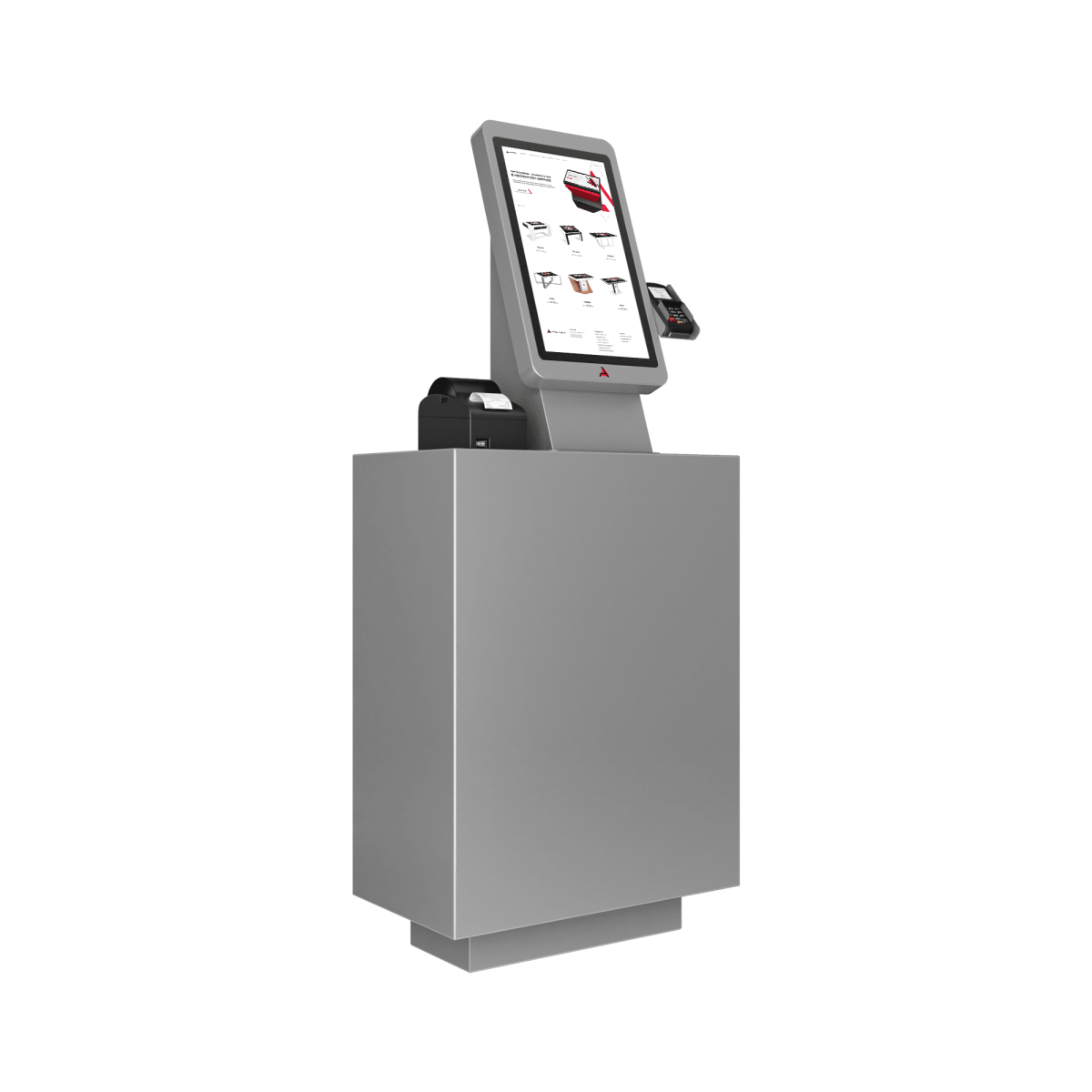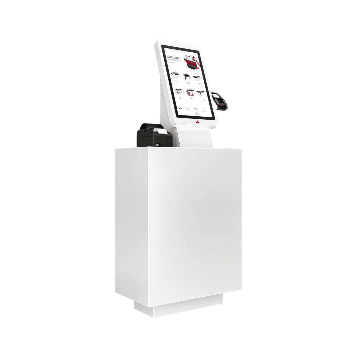 Терминал самообслуживания Sky решение настольного исполнения, занимает минимум пространства, легко в установке и удобно в эксплуатации. Устройство чаще всего используется для приема безналичной оплаты и печати кассового чека, но может быть оснащено дополнительными компонентами: сканером штрихкодов, паспортов и других документов для расширения функциональных возможностей.