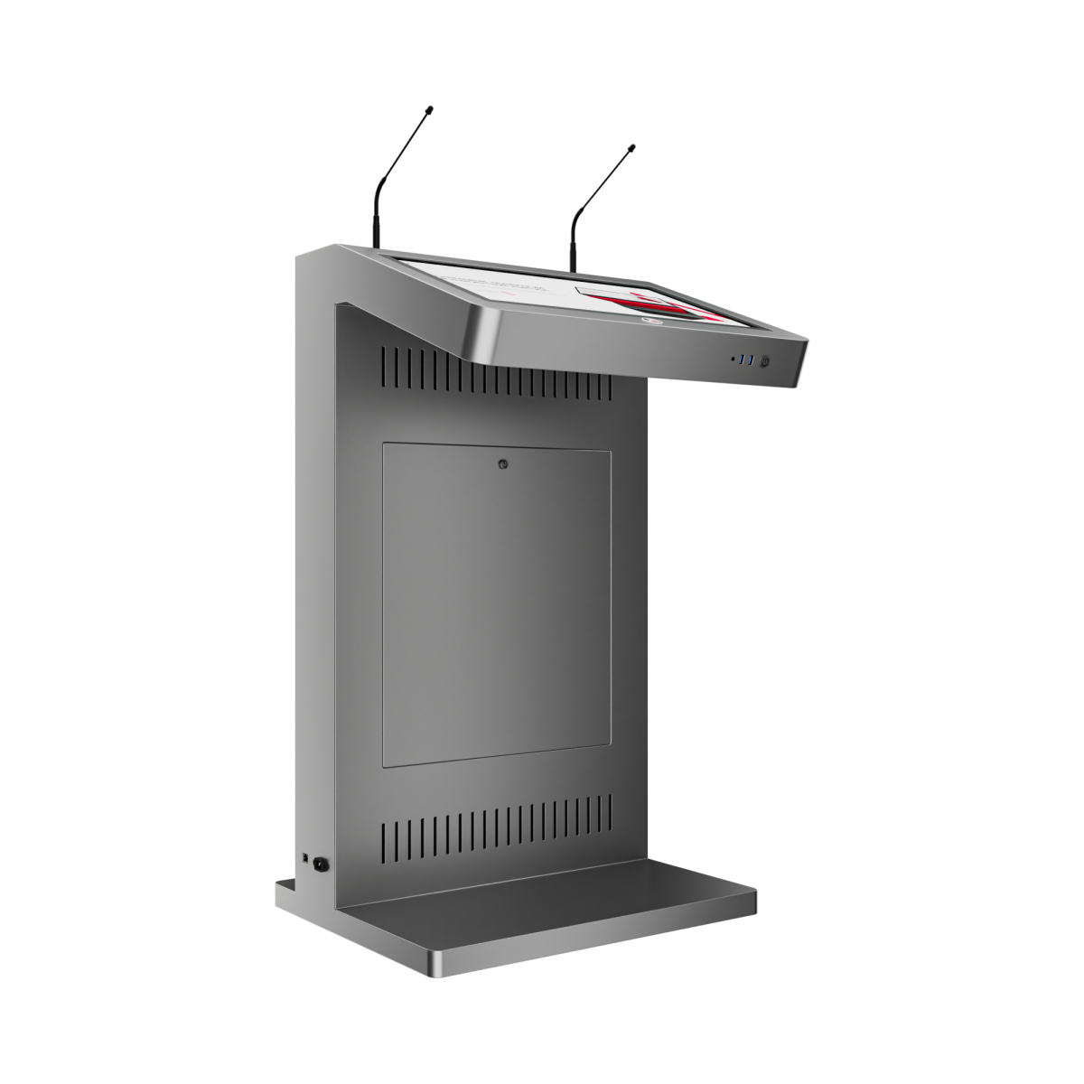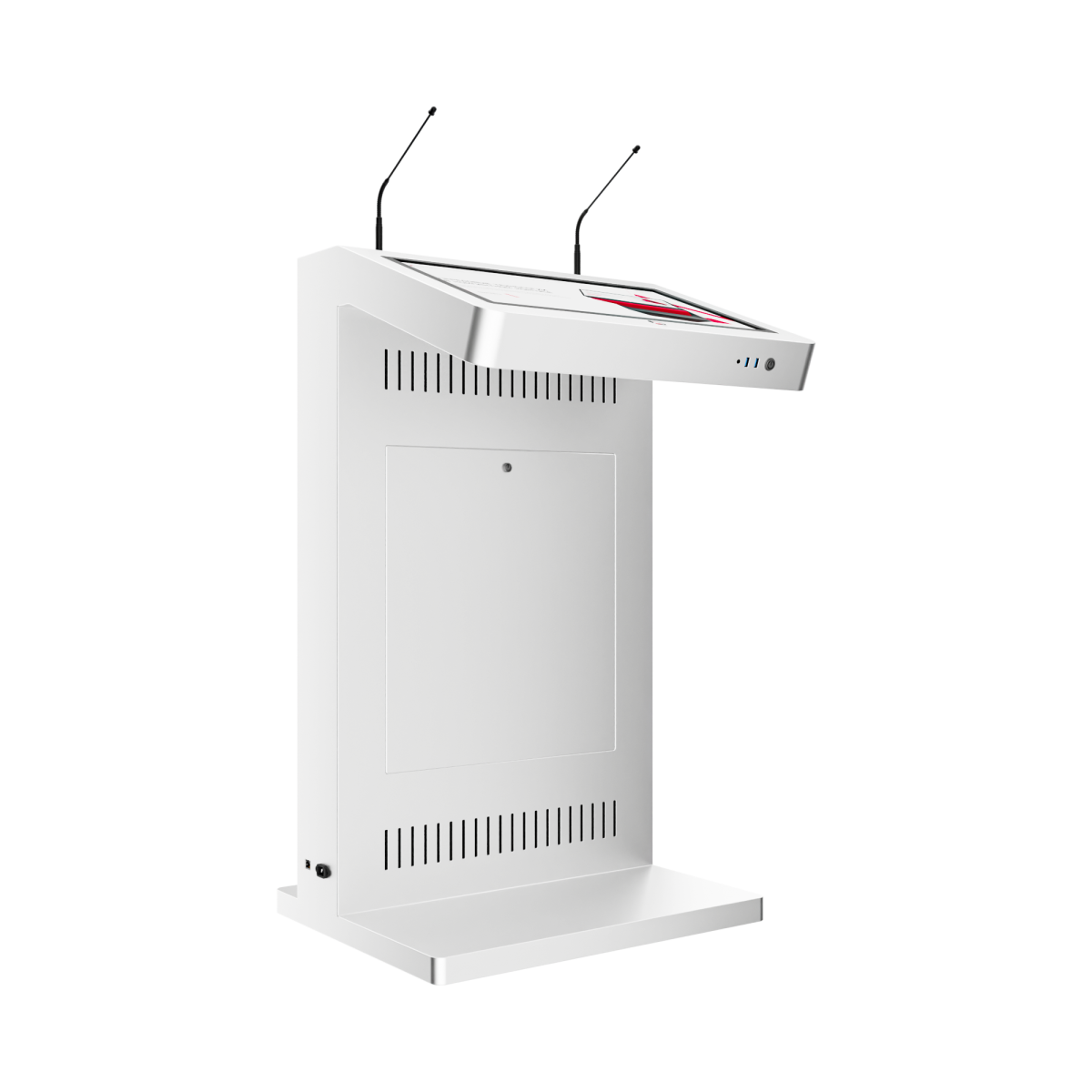 Мультимедийное решение, которое позволяет не только ярко выступить на большую аудиторию, с отображением презентационного материала, но и эффектно продемонстрировать рекламную информацию о компании, предлагаемых товарах / услугах, спикере, на большом внешнем дисплее трибуны. Модель Double оснащена мощным микрофоном, сенсорным дисплеем для спикера, а также большим внешним дисплеем для рекламного контента и набором разъемов для подключения дополнительной техники. Такая трибуна станет прекрасным помощником на конференциях, выставках, спортивных мероприятиях или других мероприятиях, где требуется визуальная поддержка презентаций и общение с аудиторией.