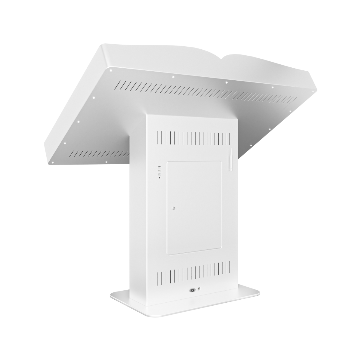 Интерактивный стол Book устройство, форм-фактор которого реализован в форме раскрытой книги. Механическая регулировка дисплея позволит настроить пользователям оптимальный угол для взаимодействия с программным обеспечением. Оборудование может быть дополнено информационным приложением или интерактивной книгой с эффектом пролистывания страниц.