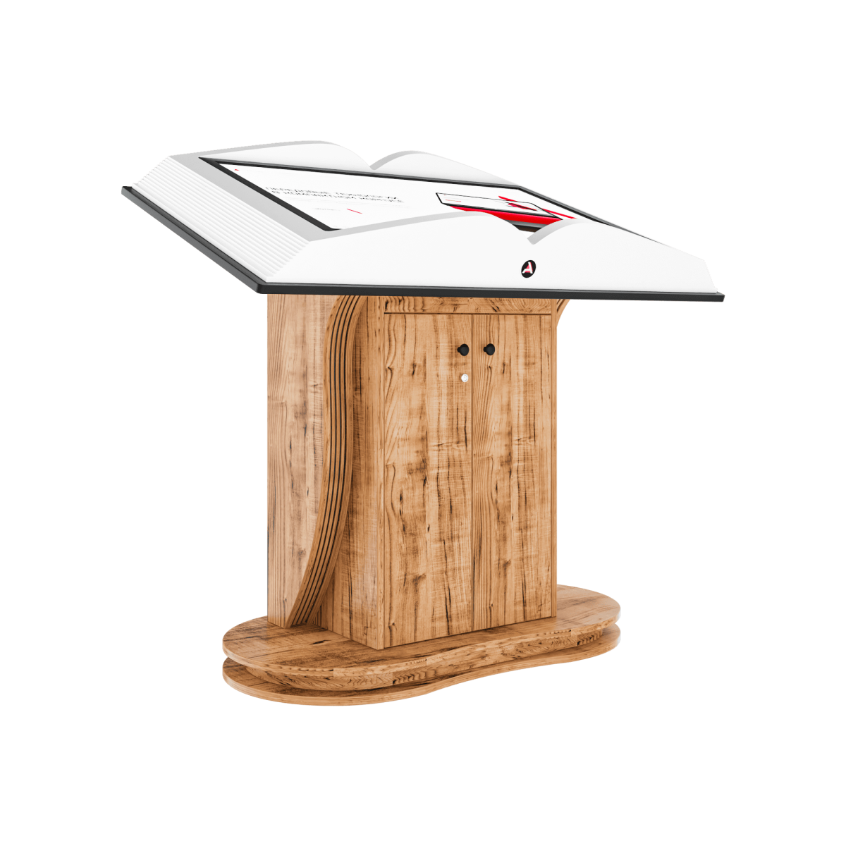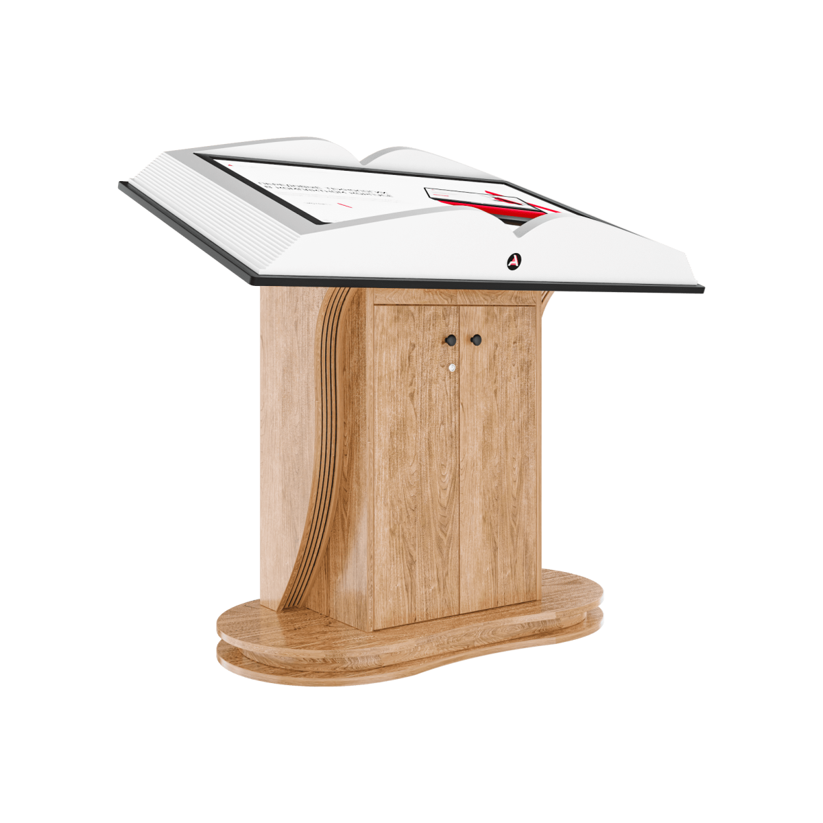 Идеальное сочетание оригинального дизайна и самых последних инновационных технологий. Данная модель оформлена в виде раскрытой книги, в которую можно загрузить совершенно любой контент: от видео, до текстовых материалов, которые можно оформить в формате перелистывающихся страниц. Book Pro прекрасно впишется в музей, а также в любое выставочное пространство и, точно привлечет к себе внимание всех посетителей.