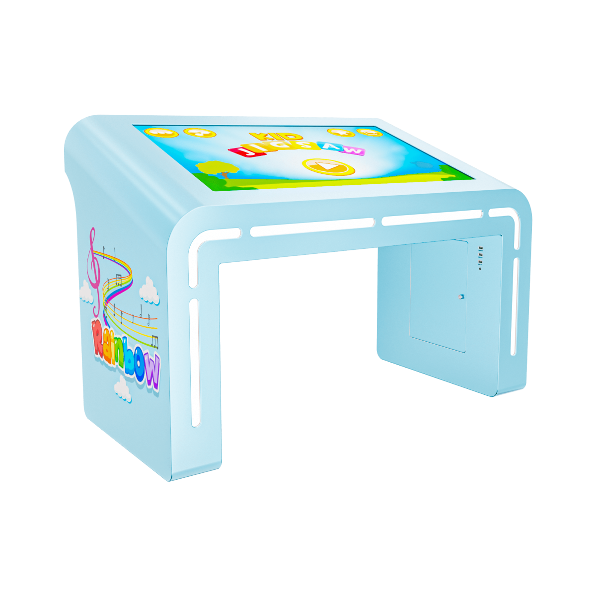 Не знаете как занять своих детей, чтоб это было весело и познавательно? Нами был создан детский интерактивный стол Leo, который позволяет сделать процесс обучения ребенка, в формате игры, увлекательным и запоминающимся. Травмобезопасный корпус с закругленными углами, мультитач-система, светодиодная подсветка, а также возможность брендирования стола под разные мультфильмы настоящая находка для родителей маленьких детей.